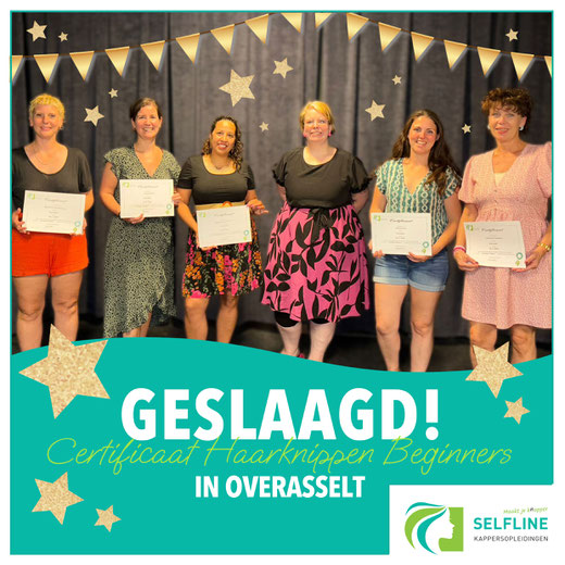 Onze cursisten uit Overasselt zijn geslaagd! Gefeliciteerd met het behalen van het certificaat Haarknippen Beginners! #Overasselt #gefeliciteerd #certificaat #cursisten #Selfline #Kappersopleiding #avondopleiding #haarknippen #praktijkgericht #kappersvak #vakdocent, #deeltijdkappersopleiding, #avondopleiding #betaalbareopleiding #haarknippen #kappersvakschool#vakkennis #kapperscursus #certficaat #kapperscursus, #vakschool, #vakopleiding, #kappersschool, #kappersvakschool, #kapper, #kapster, #kapsalon, #praktijkgericht #verven #blonderen #opsteken #vlechten #haarstyling #avondschool, #inschrijven, #eigenzaak, #voordelen #cursisten #betaalbareopleiding #ambacht #beginnerscursushaarknippen #gevorderdencursushaarknippen #haarknippen #CRKBO, #NRTO #kernwaarden, #kwaliteit, #betrouwbaar, #toegankelijk, #plezier #eigen #salon #Voordelen #Keurmerk #NRTOKeurmerk #oefeningbaartkunst #herhaal #oefening #Goes, #Alkmaar, #Arnhem, #CapelleaandenIjssel, #DenBosch, #Leeuwarden, #Groningen, #DenHaag, #Haarlem, #Overasselt, #Zwolle, #Almelo, #Hengelo #zoetermeer #Delft #Nederland #Leiderdorp
